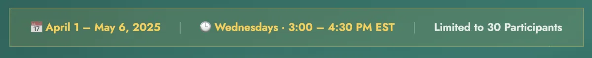 📅 April 1 – May 6, 2025 🕒 Wednesdays · 3:00 – 4:30 PM EST ✦ 6 Live Weekly Sessions